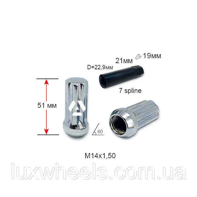 | Гайка колісна A911448SD M14X1,50 Хром висота 51 мм 7 промінь, закрита |